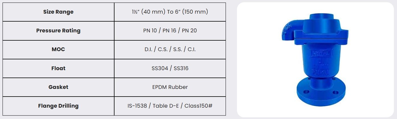 Tamper Proof Kinetic Air Valve Double Chamber Flanged End