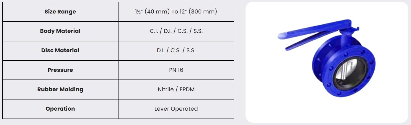 Double Flanged Butterfly Valve Centric Disc Type Lever Operated