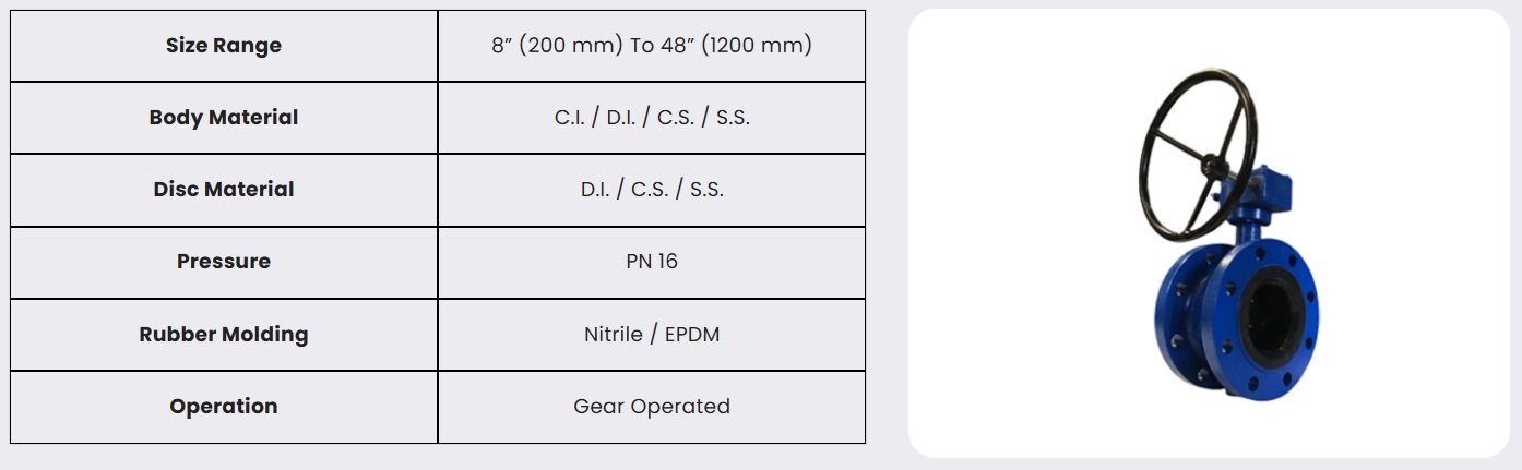 Double Flanged Butterfly Valve Centric Disc Type Gear Operated