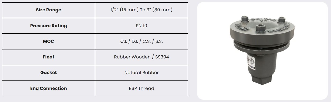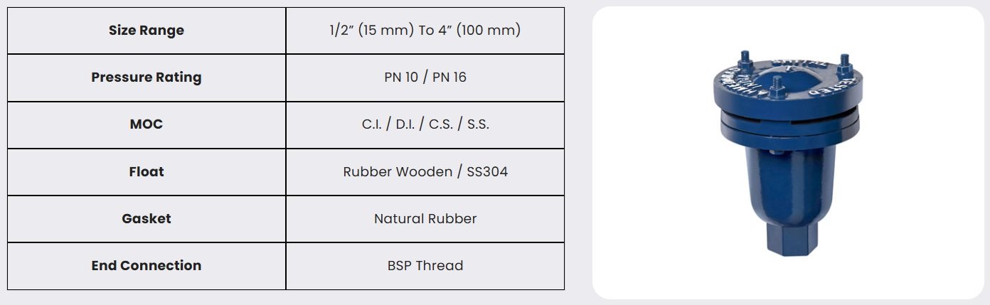 Air Valve Single Chamber Threaded (Heavy Duty)